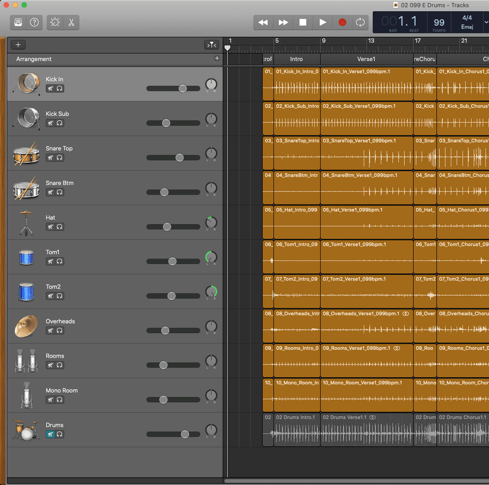 Formatted to seamlessly integrate with your DAW. The sessions are pre-populated and pre-mixed with all of the song sections, performances, and samples for every song kit in the library. Create, edit, and mix directly within your DAWs environment. Logic Pro, Cubase, ProTools, and Garageband… more coming soon!