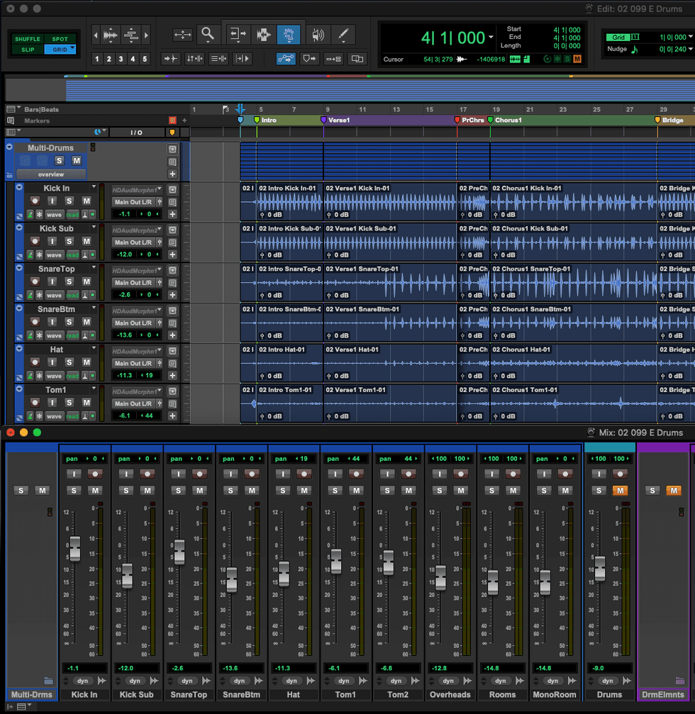 - Multitrack Drums — Multitrack Drums are provided in the 24-bit WAV file format and contain each of the drum kit pieces like Kick, Snare, Hat, and more as there own separate file, allowing you to have complete control over each of the drum kit elements in your mix. The multitrack recordings of performances contain the complete studio session with nothing held back.