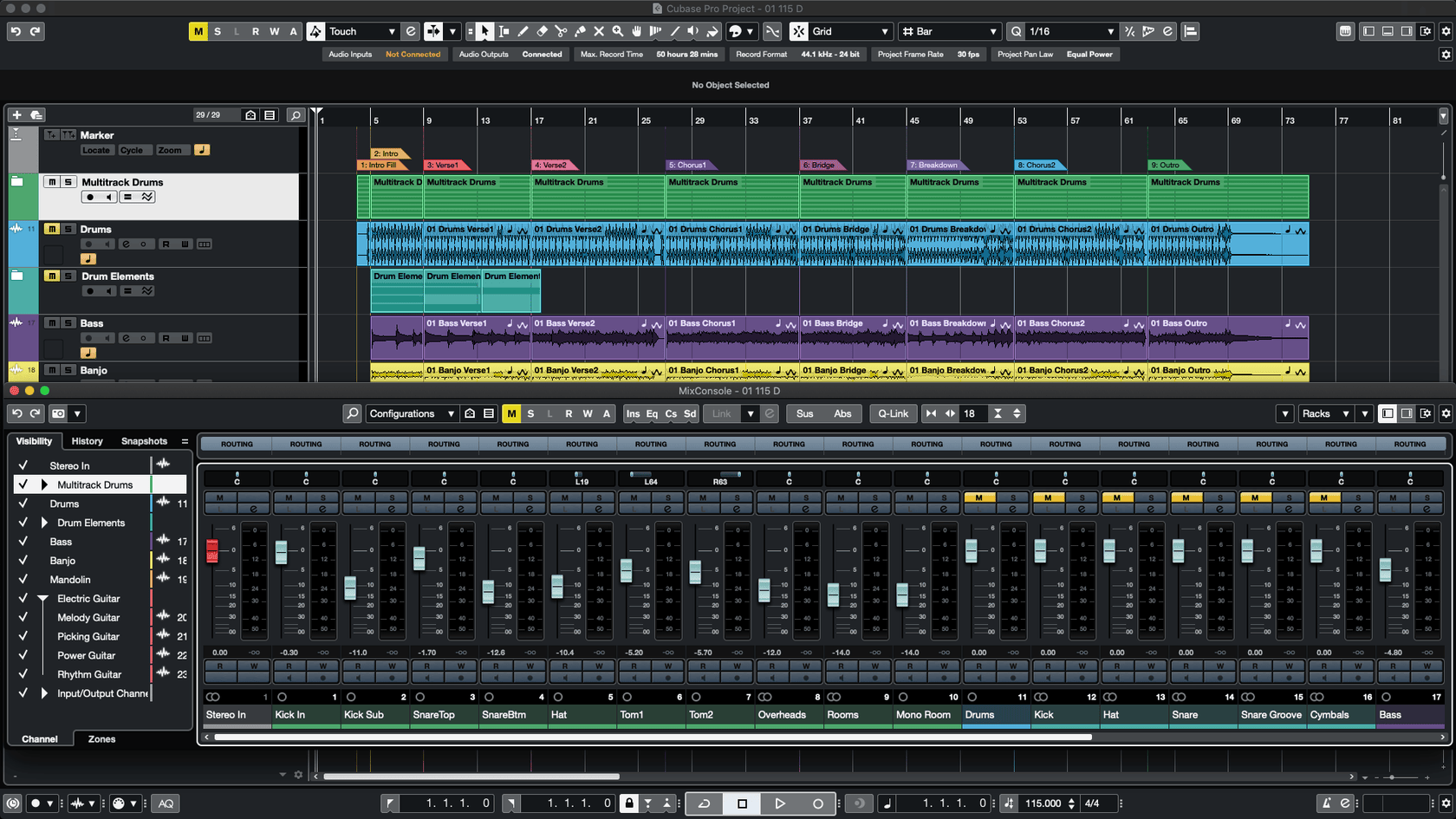 Each session loads with the correct key and BPM already applied. Cubase instantly locks drums, guitars, and melodic tracks together, giving you a coherent starting point. From there, adjust tempo, stretch parts, or blend multiple kits — everything stays in sync with Cubase’s native pitch and time tools.