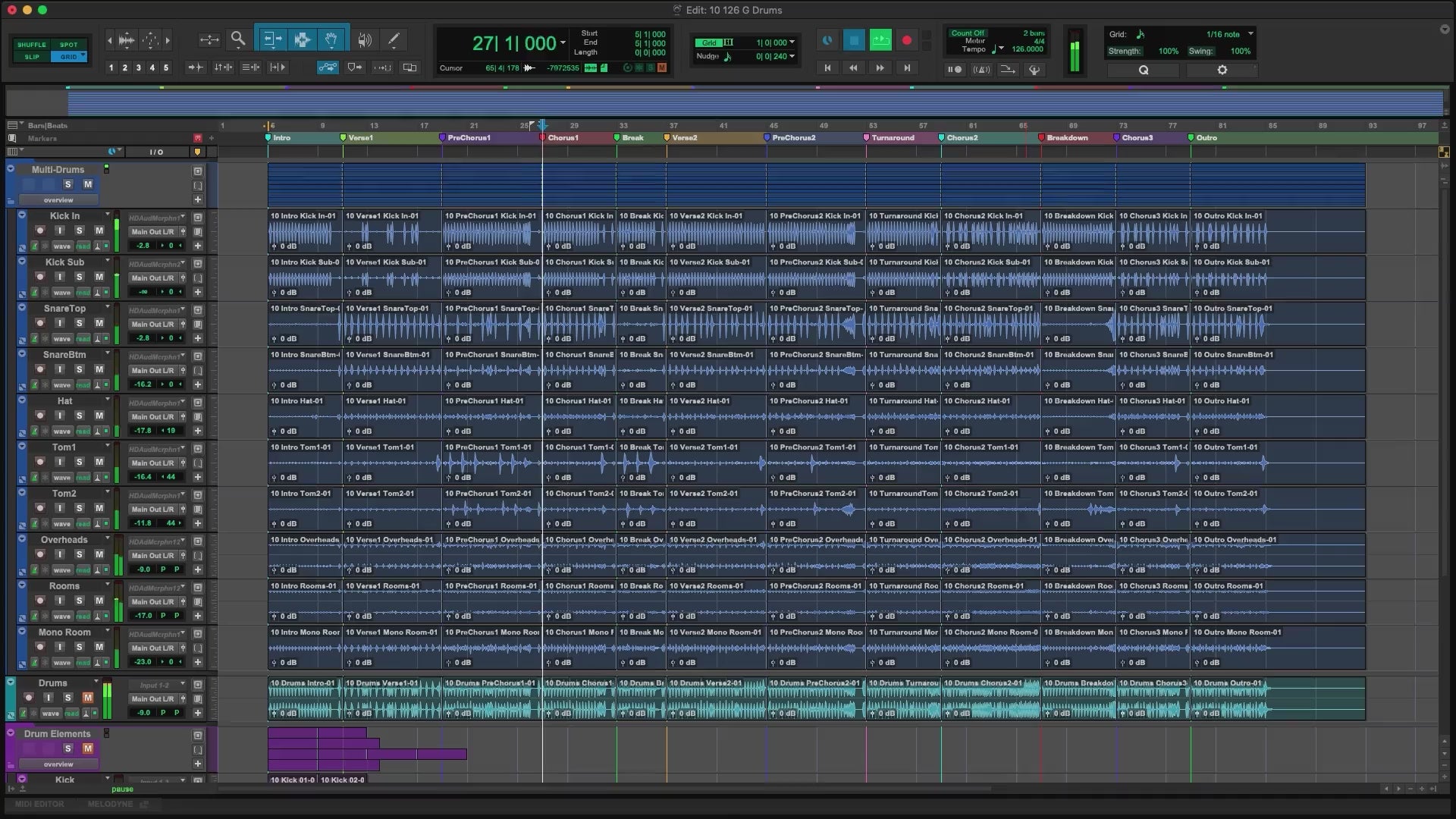 Formatted to seamlessly integrate with your DAW. The sessions are pre-populated and pre-mixed with all of the song sections, performances, and samples for every song kit in the library. Create, edit, and mix directly within your DAWs environment. Logic Pro, Cubase, ProTools, and Garageband… more coming soon!