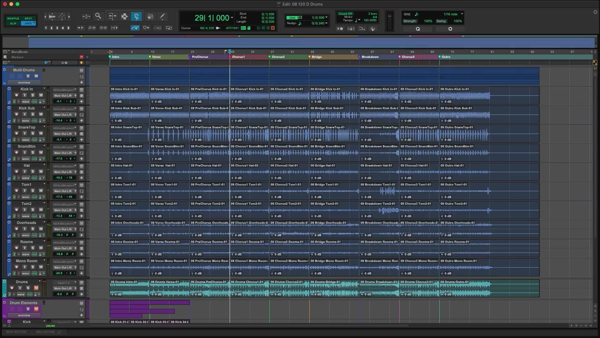 The DAW Sessions are formatted to seamlessly integrate with Logic Pro, Cubase, ProTools, and OMF… more coming soon! The sessions are pre-populated and pre-mixed with all of the song sections, performances, and samples for every song kit in the library. Create, edit, and mix directly within your DAWs environment.