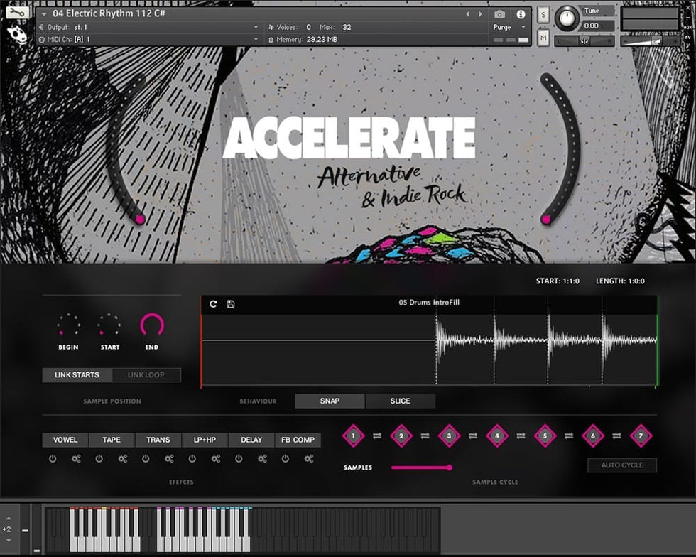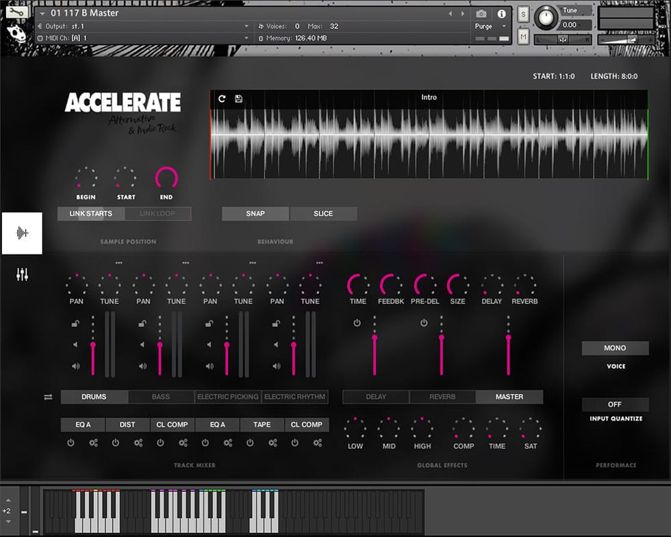 The Kontakt edition is not a multi-sampled virtual instrument but rather a phrase-based engine built from performances, loops, and samples that allow you to create an authentic performance from the recorded content.