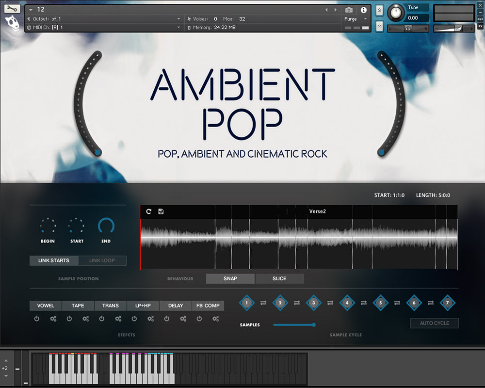 The Kontakt edition is not a multi-sampled virtual instrument but rather a phrase-based engine built from performances, loops, and samples that allow you to create an authentic performance from the recorded content.