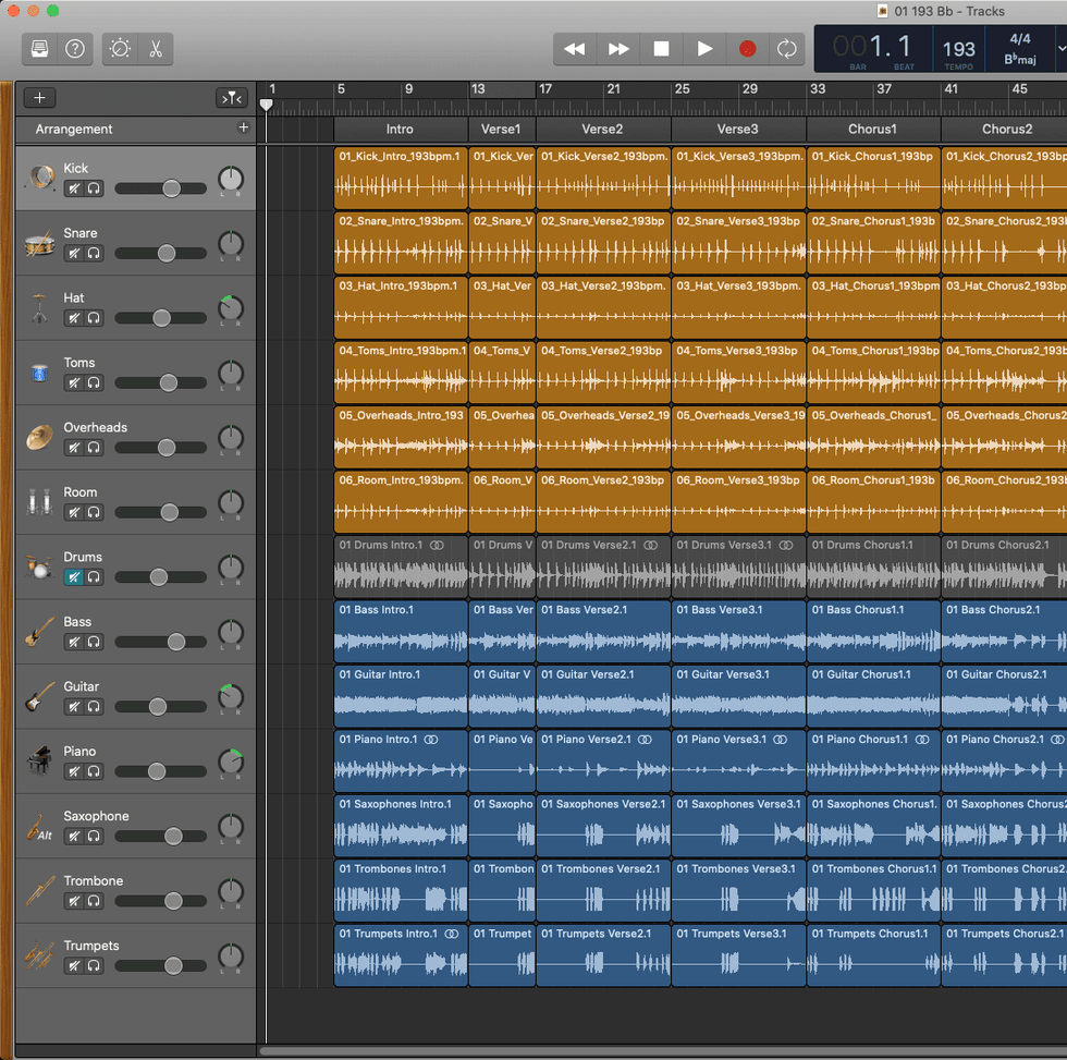 Formatted to seamlessly integrate with your DAW. The sessions are pre-populated and pre-mixed with all of the song sections, performances, and samples for every song kit in the library. Create, edit, and mix directly within your DAWs environment. Logic Pro, Cubase, ProTools, and Garageband… more coming soon!