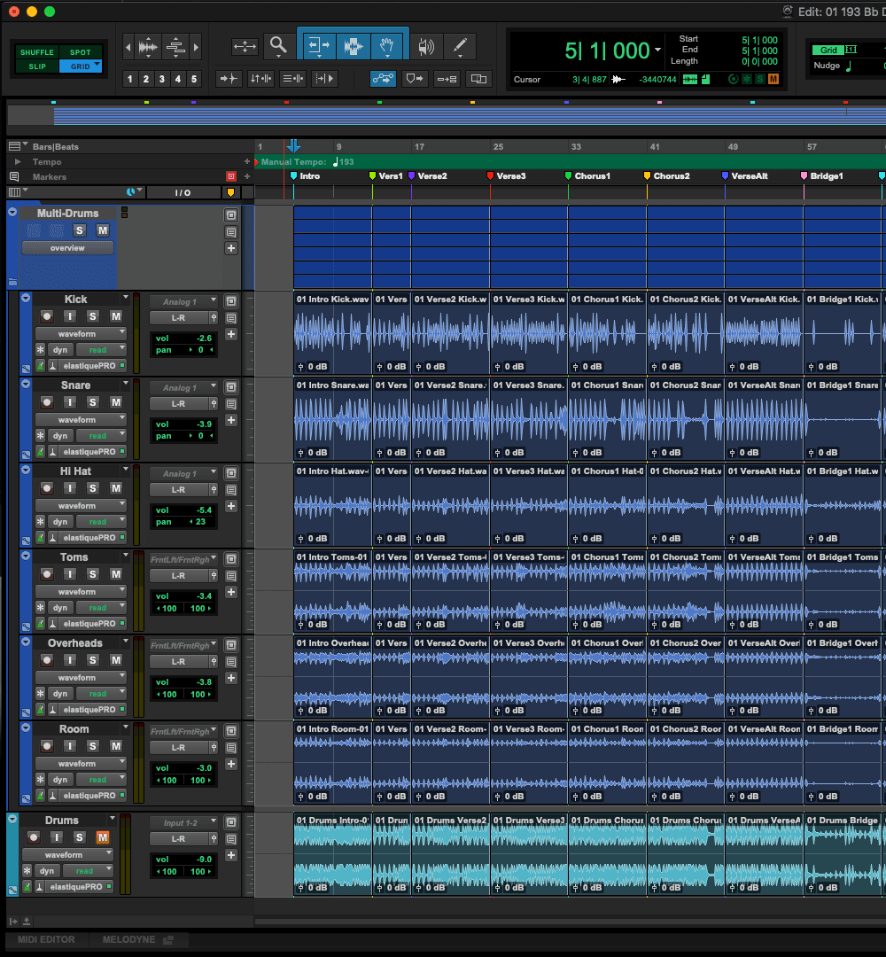 - Multitrack Drums — Multitrack Drums are provided in the 24-bit WAV file format and contain each of the drum kit pieces like Kick, Snare, Hat, and more as there own separate file, allowing you to have complete control over each of the drum kit elements in your mix. The multitrack recordings of performances contain the complete studio session with nothing held back.