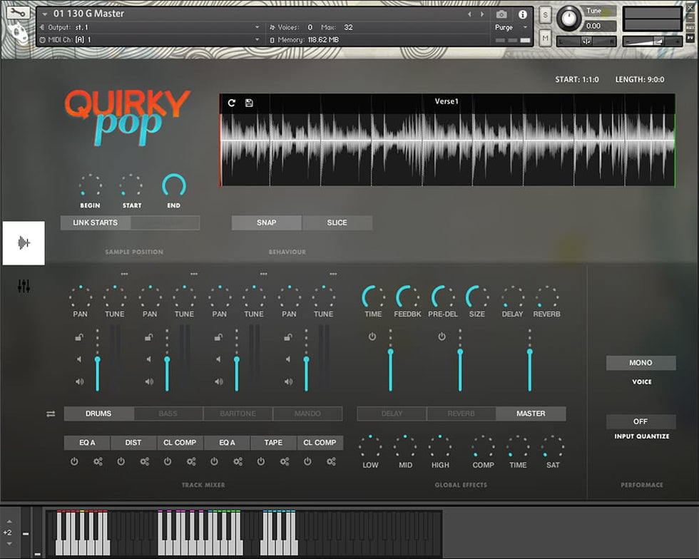 The Kontakt edition is not a multi-sampled virtual instrument but rather a phrase-based engine built from performances, loops, and samples that allow you to create an authentic performance from the recorded content.